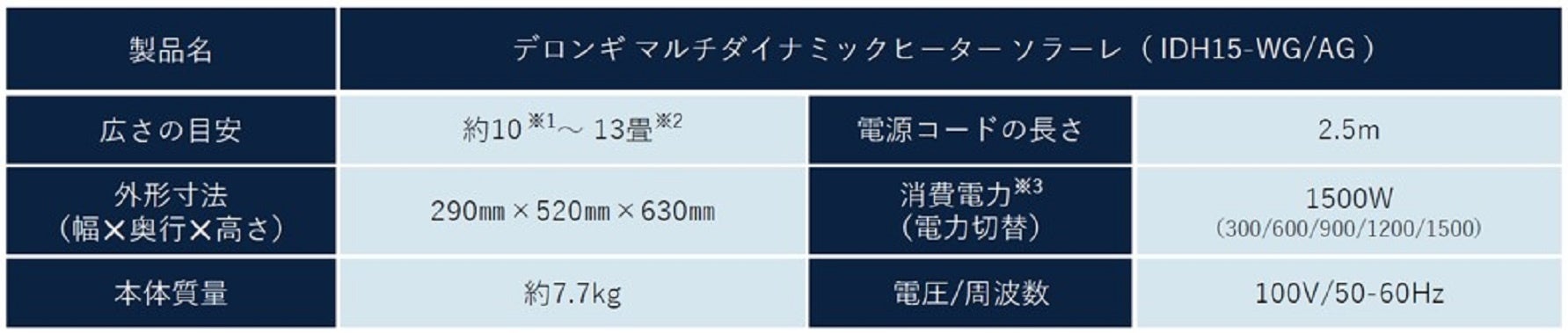 デロンギ マルチダイナミックヒーター ソラーレ( IDH15-WG/AG )