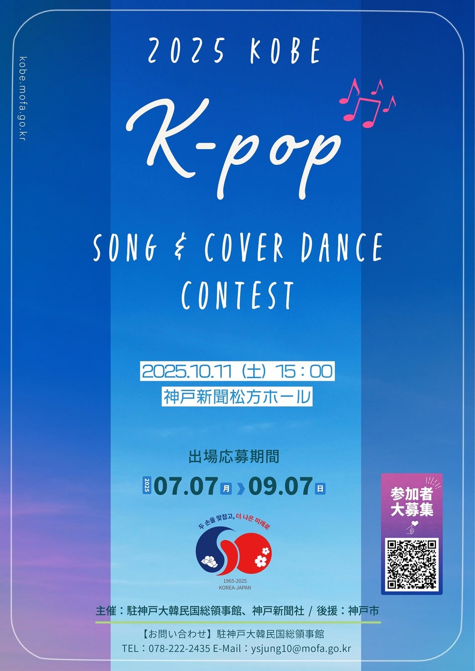駐神戸大韓民国総領事館では神戸新聞社と共催で、 K-POP を愛する皆様の情熱を形にする舞台「2025神戸K-POPソング&カバーダンスコンテスト」を開催いたします。