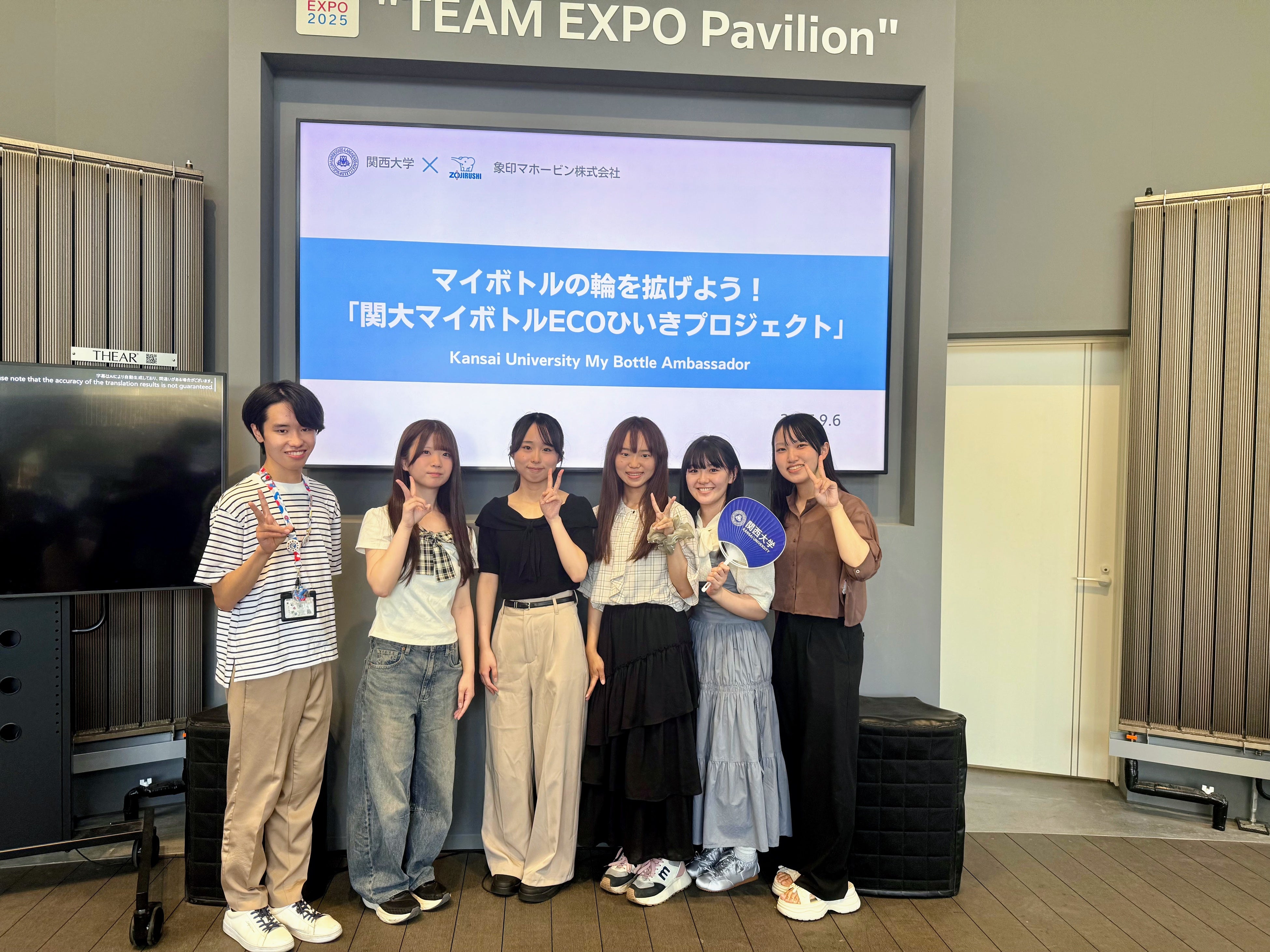 大阪・関西万博「TEAM EXPO2025プログラム/共創チャレンジ」に登録し、会場内で関大マイボトルアンバサダー「ECOひいきプロジェクト」の活動について成果発表を行いました。