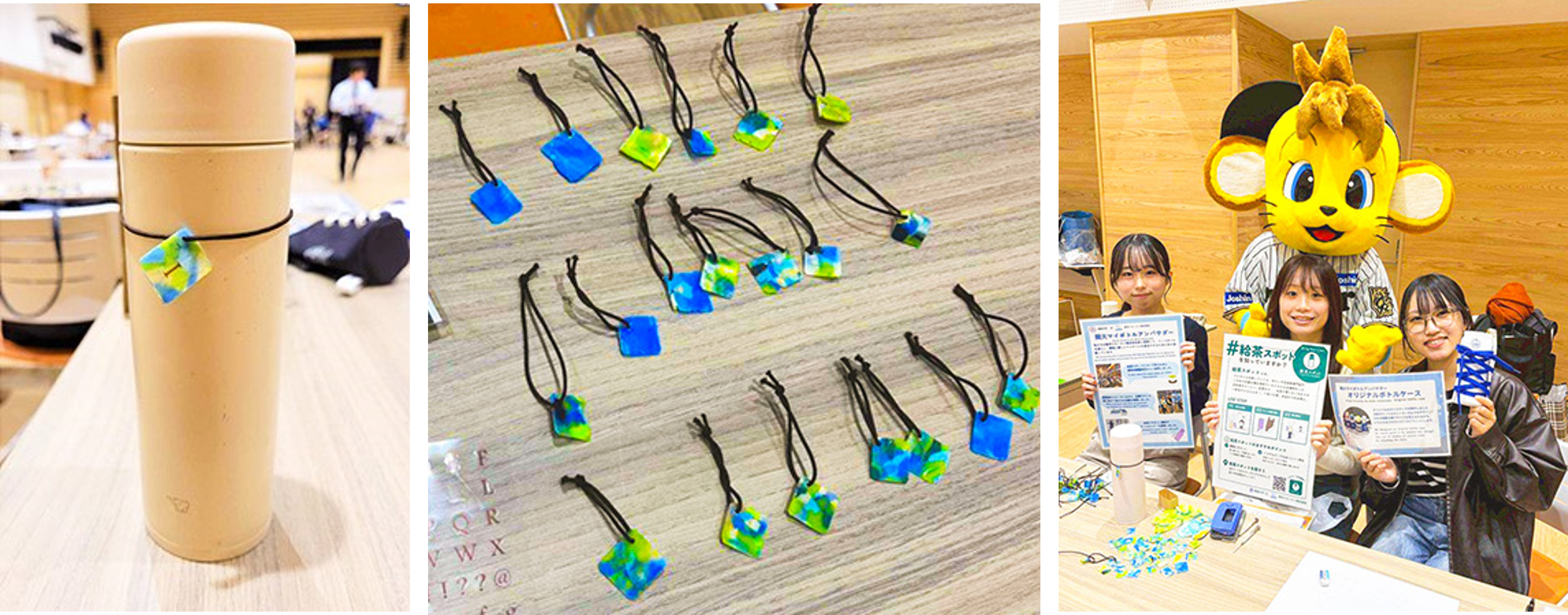 立花南生涯学習プラザで開催された「エコあまフェスタ」において、ペットボトルのキャップを再利用したマイボトル用アクセサリー作りのワークショップを実施しました。捨てられるはずだった素材の価値を伝えるきっかけを提供しました。