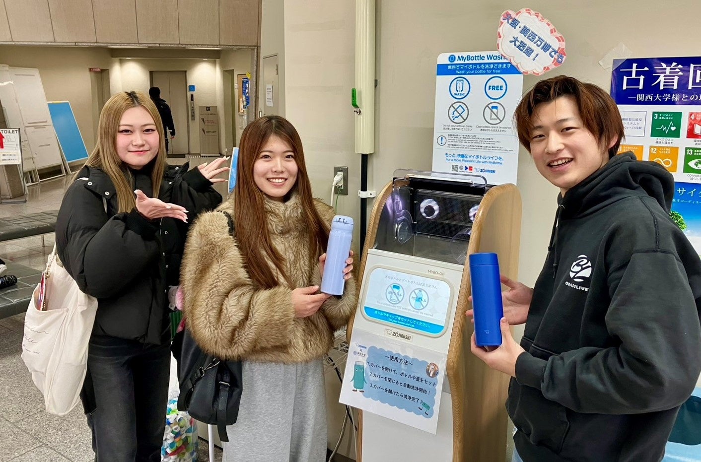 象印マホービンが大阪・関西万博会場内に設置した10台の「マイボトル洗浄機」のうち1台を関西大学千里山キャンパスに設置しました。