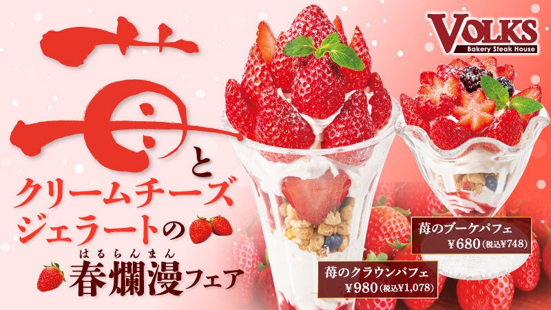 株式会社アークミール(本社:埼玉県さいたま市、代表取締役社長:柳 先)が運営する『フォルクス』では、2023年2月20日(月)から『苺とクリームチーズジェラートのデザートフェア』を開催いたします。
