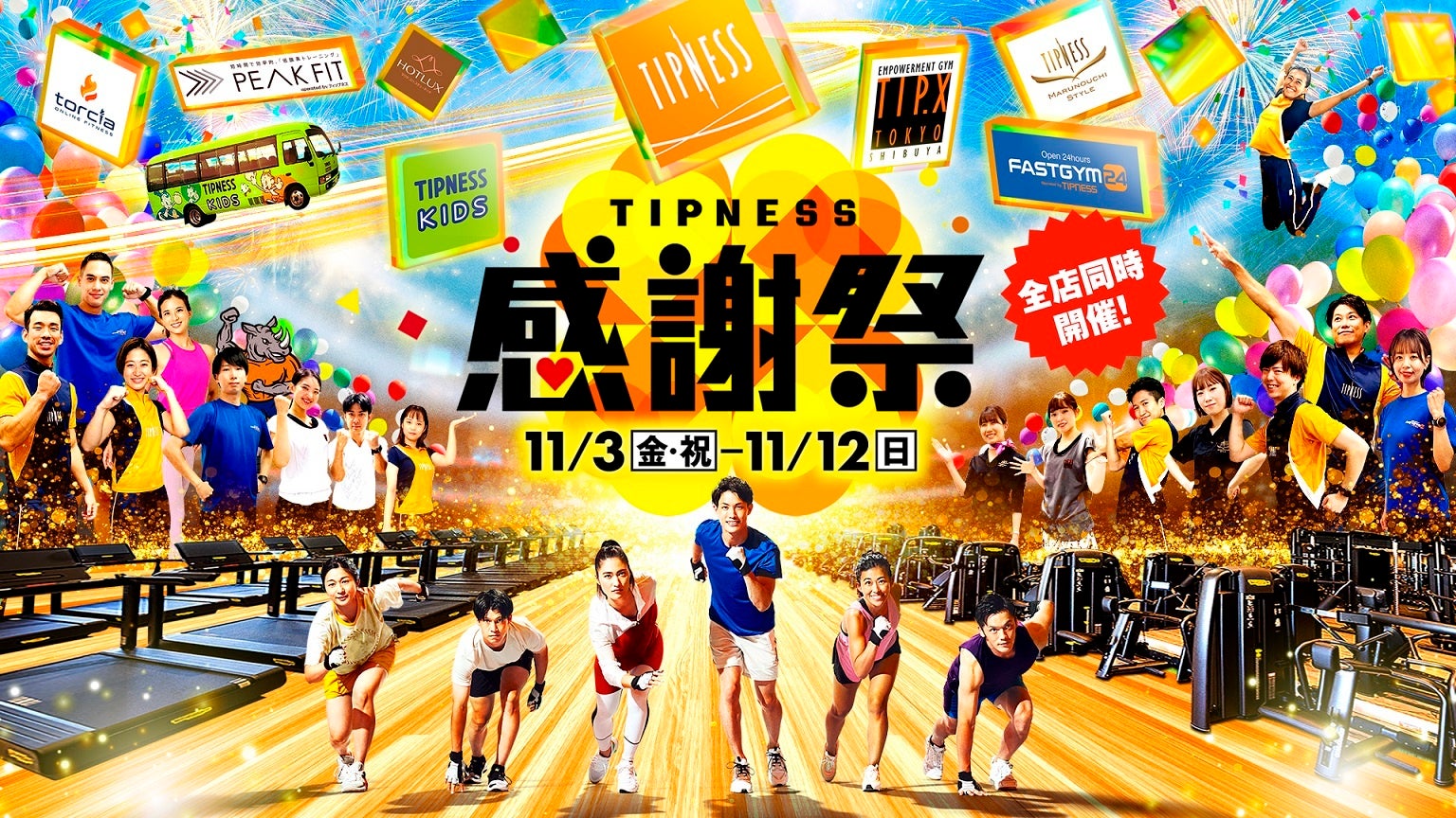 地域の皆さまを施設へご招待、オンラインフィットネスを無料配信、など企画盛りだくさん 「TIPNESS感謝祭」 11月3日より全ブランド全店で同時開催!