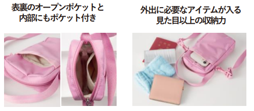 見た目以上の収納力で外出に必要な荷物が入る、手持ちも肩掛けもOKの2WAYポシェット。旅行時や普段の外出も身軽にしたいミニマム派におすすめ。