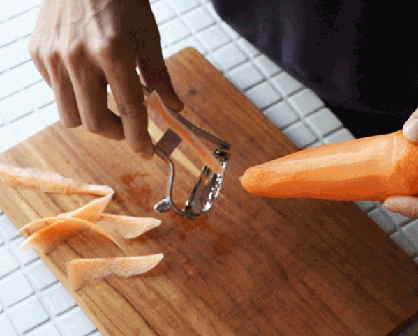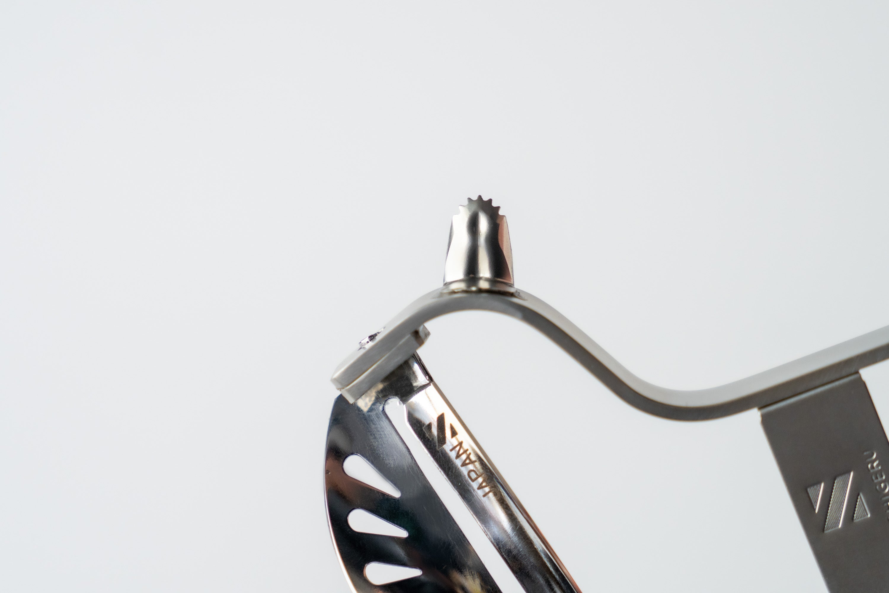 ピーラーの刃として使用される一般的な素材よりも、さらに上位グレードの鋼材を使用することで、ぐっと切れ味を向上させています。切れ味のよさとその持続性、耐久性を兼ね備えた材質です。