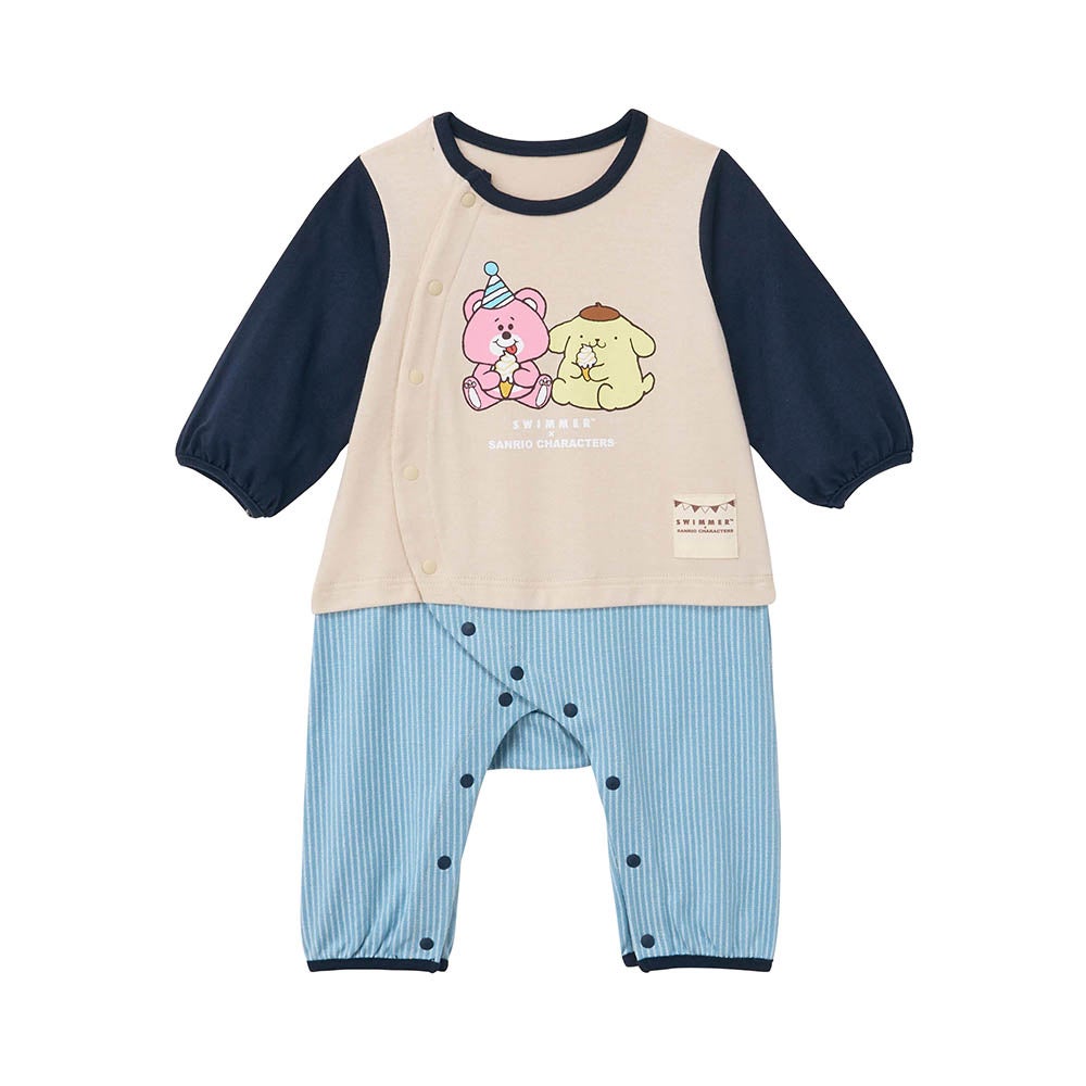「SWIMMER×サンリオキャラクターズ プリント長袖前開きカエルロンパース」