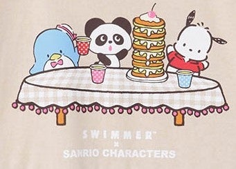 「アイボリー×レッド系」は、スイマーのキャラクターとハロー・キティが一緒にホットケーキを作るシーンを、「ベージュ×ネイビー系」ではスイマーのキャラクターとタキシードサム、ポチャッコが共にパンケーキを囲んでいるシーンをプリントしました。サンリオとスイマーそれぞれで長年に渡り愛されてきたキャラクターたちが共演する、賑やかなデザインです。
