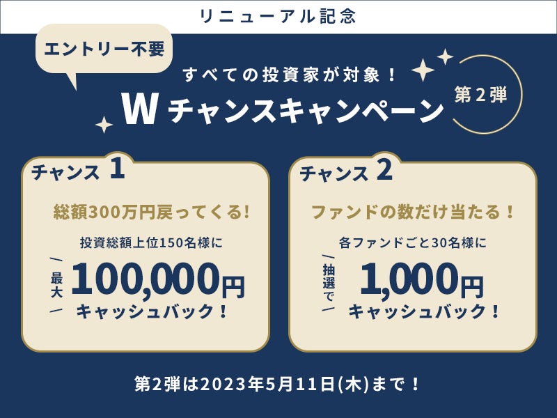 ■【リニューアル記念】Wチャンスキャンペーン第2弾実施中!