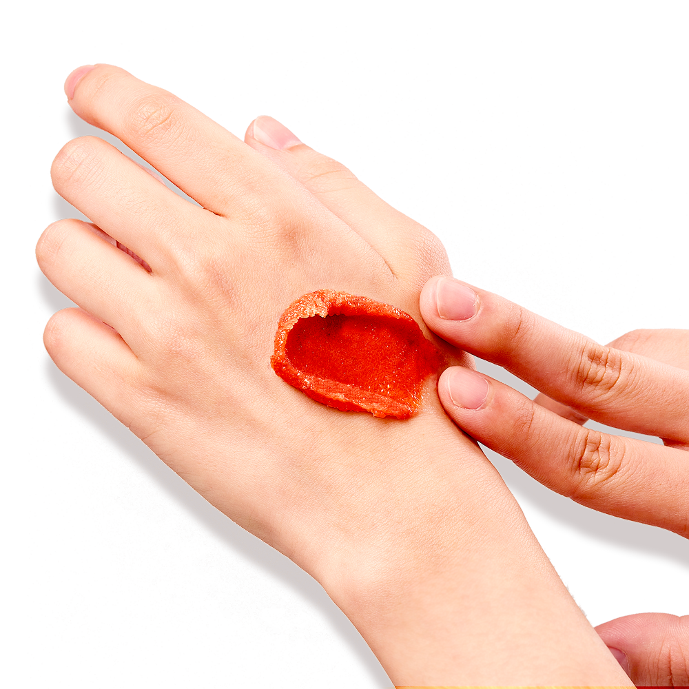 なめらかなコチュジャンが肌をホットに温め、開いた毛穴に唐辛子のニードルが突き刺さり、刺激的なパックタイムを演出します。