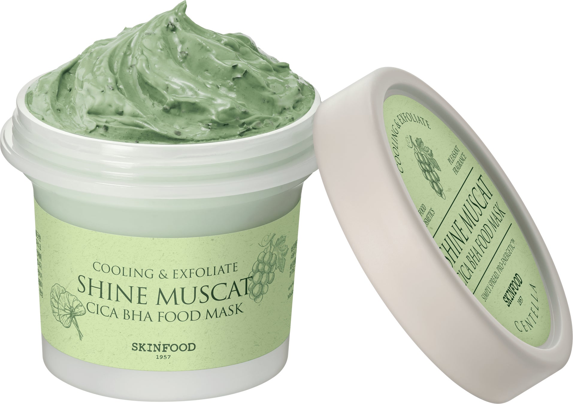シャインマスカット(*2)のうるおいを与えながら、気になる毛穴汚れやザラつきをオフし、荒れがちな肌をひんやり落ち着かせるCICA(*4)配合のクーリングクレイ*1マスク。