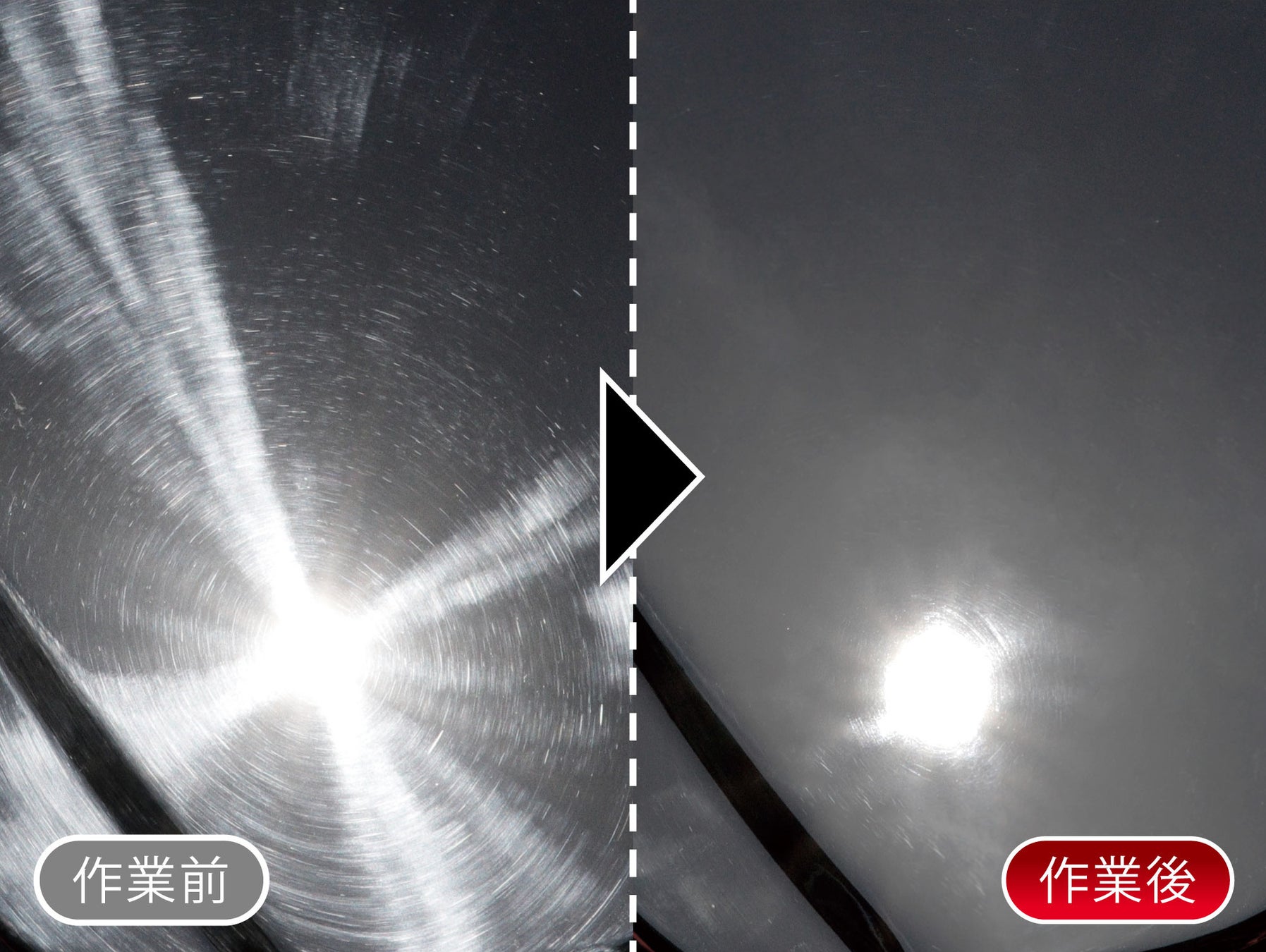水アカ・古いコーティング被膜・鉄粉・小キズなどをしっかり落とす