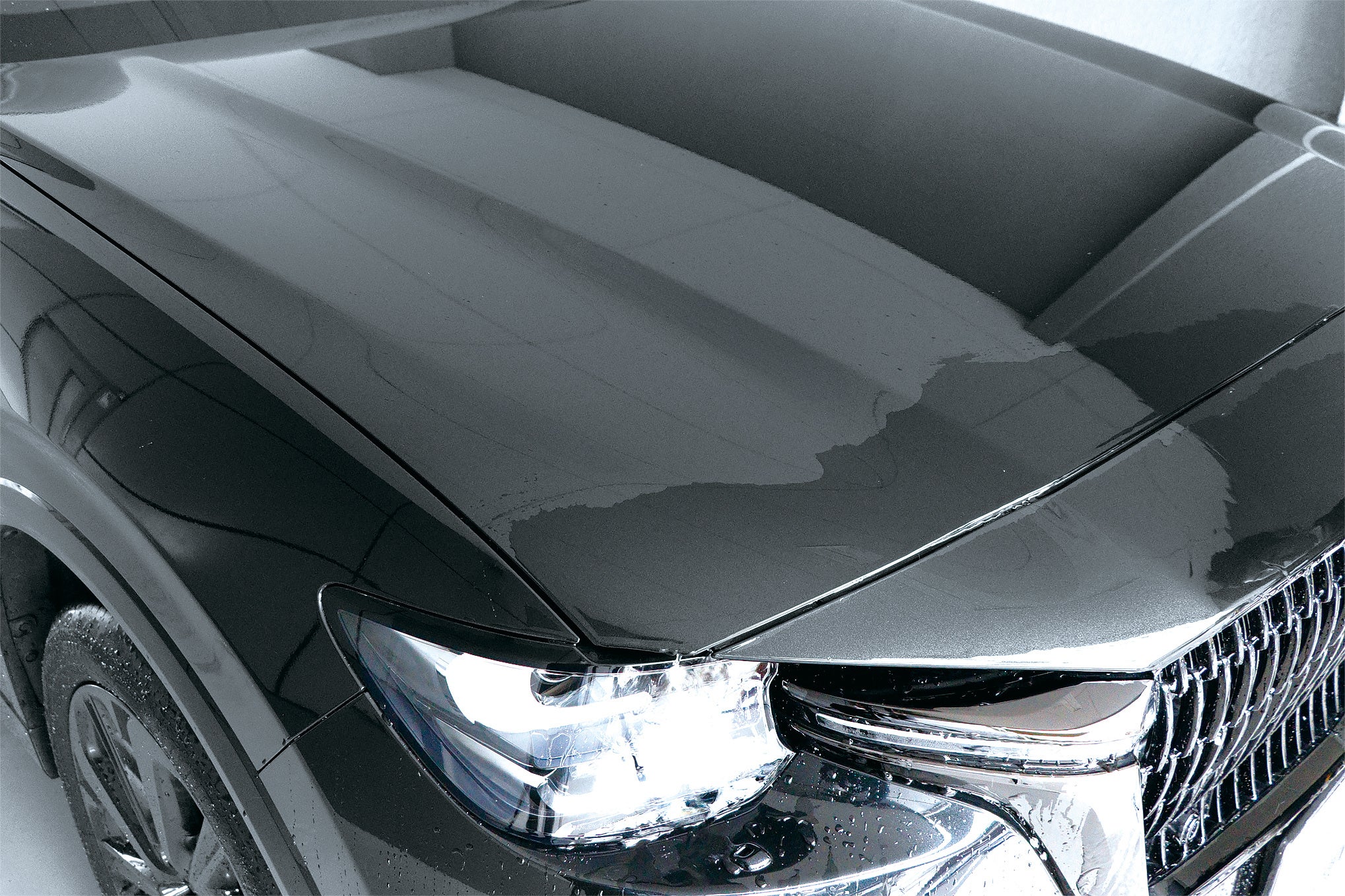 塗装面(ボディ、バンパーなど)だけでなく、クロームメッキ(ドアノブ、グリル、ホイールなど)やクリア樹脂(ドアバイザー、ヘッドライトなど)にも使用可能