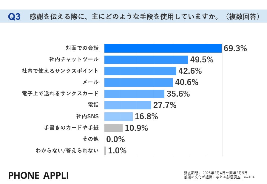 ③感謝を伝える手段、約7割が「対面での会話」を重視