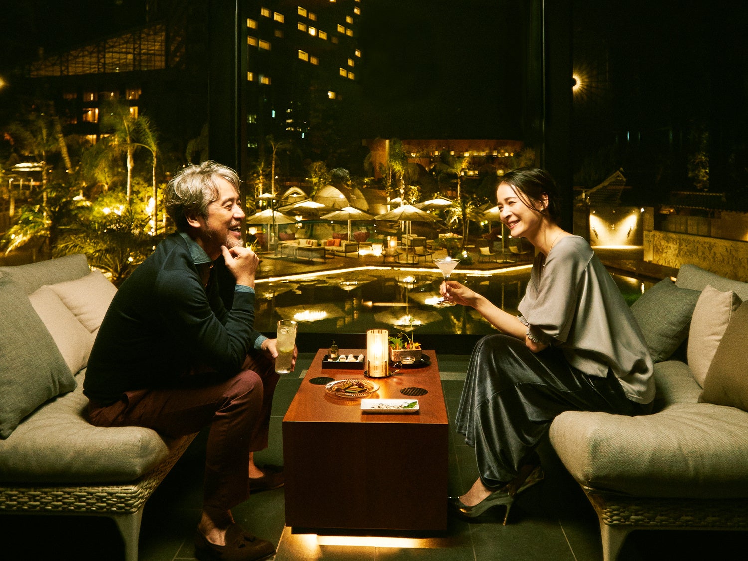 1泊5食付きプランは、2017年より販売を開始し、これまで累計で36,000室以上(2025年11月1日現在)のご利用をいただいた大人気宿泊プランで、夕食、昼食、朝食、ティータイム、そしてバータイムまで、1泊2日の滞在で、シーガイアならではの多彩な食体験を存分にお楽しみいただくことができます。今回の、冬の1泊5食付きプランは、夕食、朝食、バータイムを複数の店舗から選ぶことができ、さらに温泉施設「松泉宮(しょうせんきゅう)」の入浴も付いた、冬のリゾートステイに最適なプランとなっています。