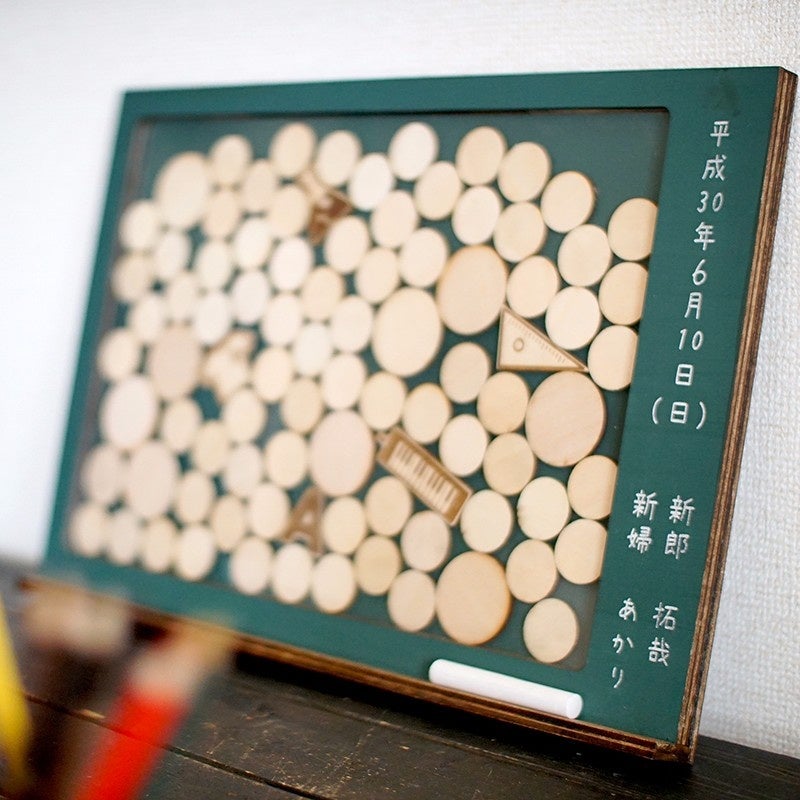 教師のおふたりなら黒板モチーフにするなど、新郎新婦の背景やストーリーに合わせて仕立てるウェディングドロップス。完全オーダーで、ふたりらしさを表現できるアイテムです。