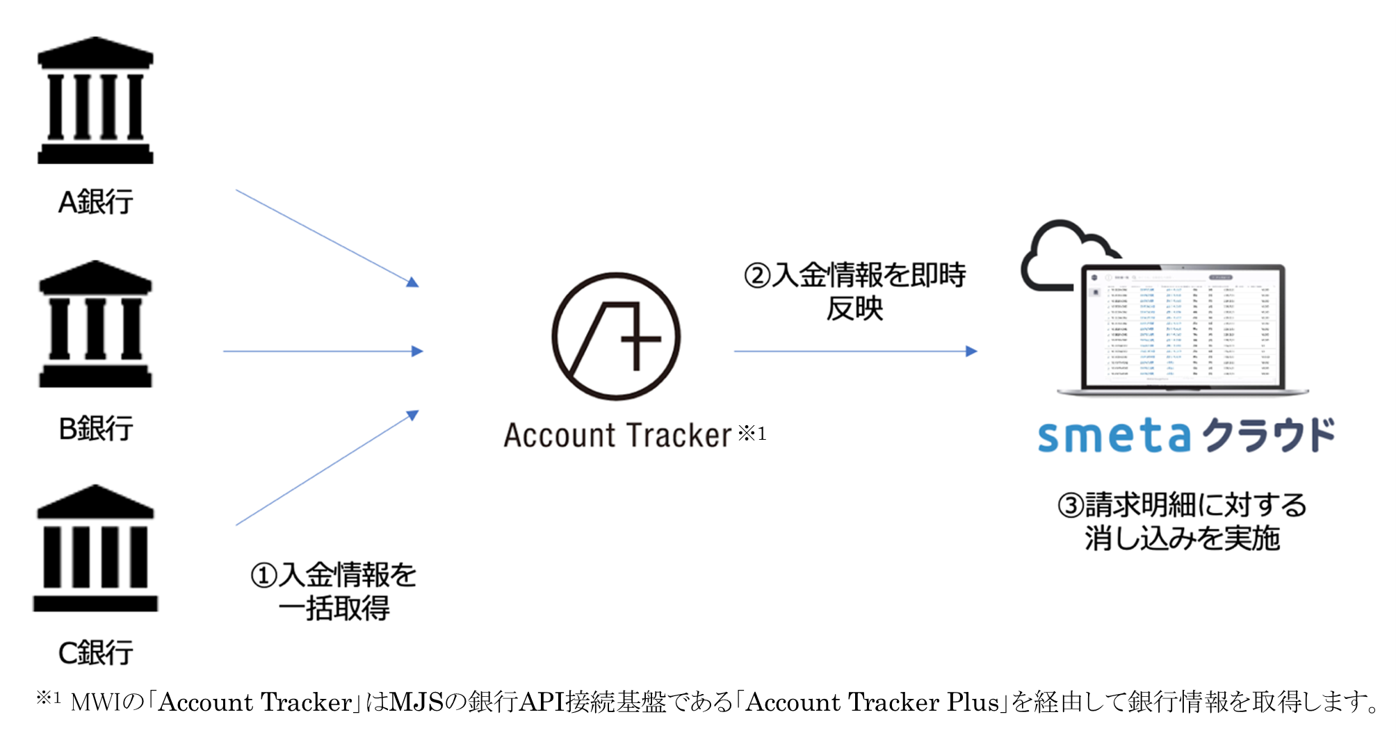 財務・会計システムおよび経営情報サービスを開発・販売する株式会社ミロク情報サービス(本社:東京都新宿区、代表取締役社長:是枝 周樹、以下「MJS」)の子会社であるMiroku Webcash International株式会社(本社:東京都港区、代表取締役社長:市川 秀水 以下、「MWI」)が提供するアカウントアグリゲーションサービス『Account Tracker(アカウント トラッカー)』はこのほど、リース株式会社(本社:東京都新宿区、代表取締役:中道 康徳、以下「リース社」)が提供する家賃保証業務に特化したDX支援SaaS『smeta(スメタ)クラウド』に採用され、2022年11月1日からサービス連携を開始しました。