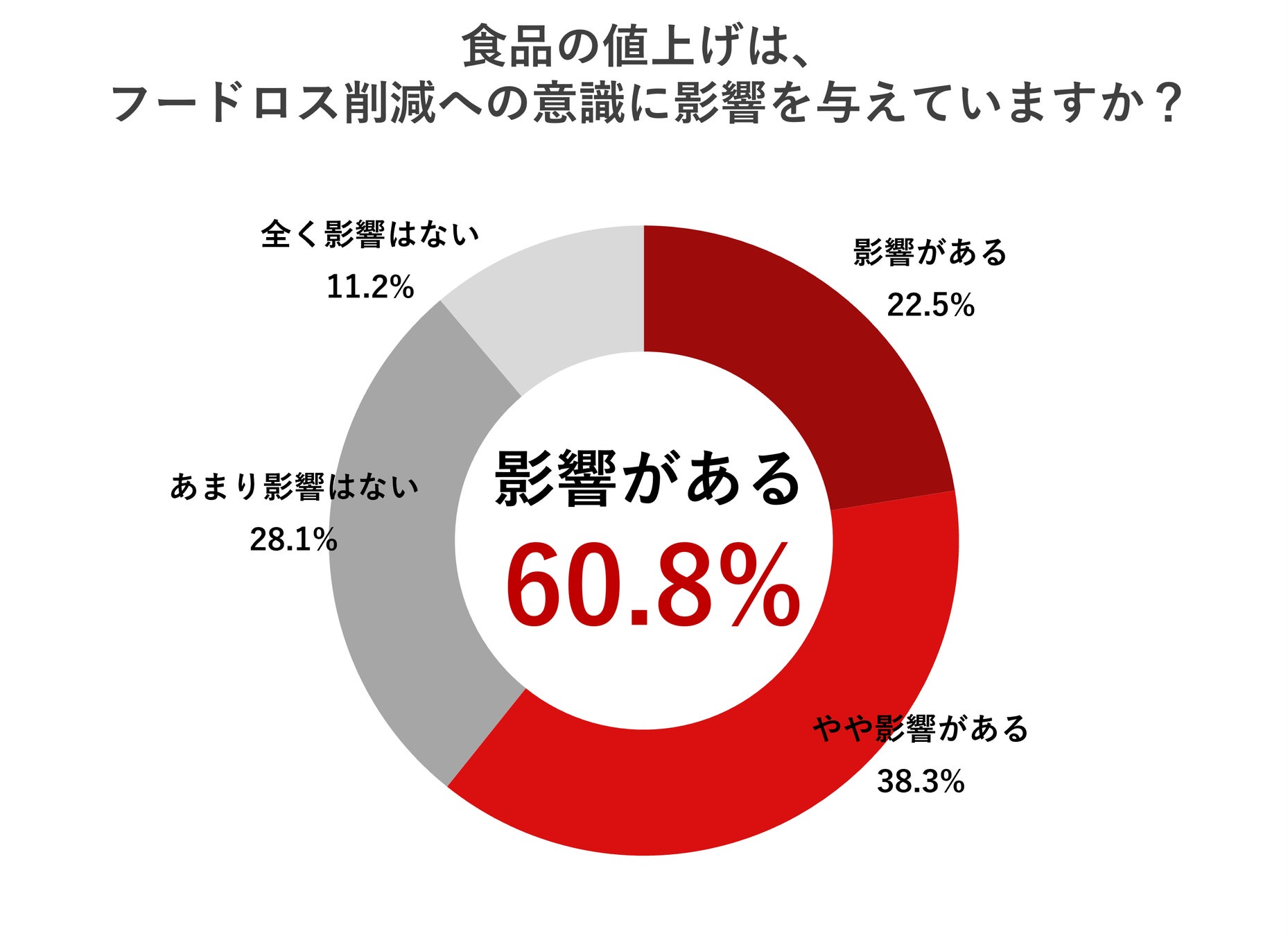 今回の調査によって、フードロス削減の意識度は75.1%、実施度は68.7%と多くの人が意識して取り組んでいることや、地域によって差があり比較的西日本の方が意識・実施度共に高いことがわかりました。また食品値上げがフードロス削減の意識に影響を与えると回答した割合が6割超となりました。具体的な取り組み内容では「賞味期限を意識している」が最多の64.2%で、自由回答ではエシカルポイントやフードドライブの活用、リボベジ(再生栽培)など多彩なアイデアが集まりました。