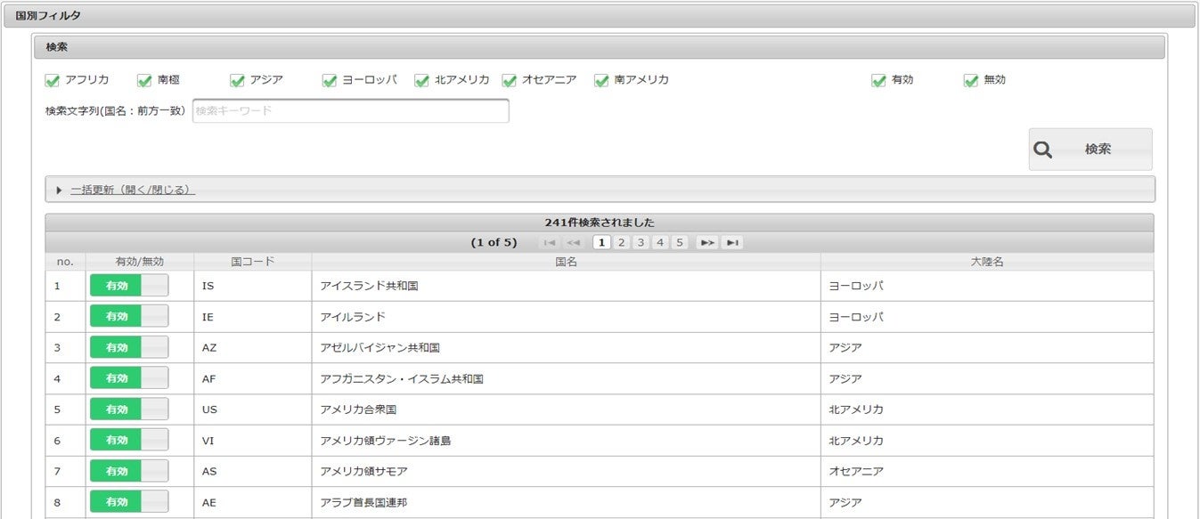 ■新機能:国別フィルタの設定画面イメージ