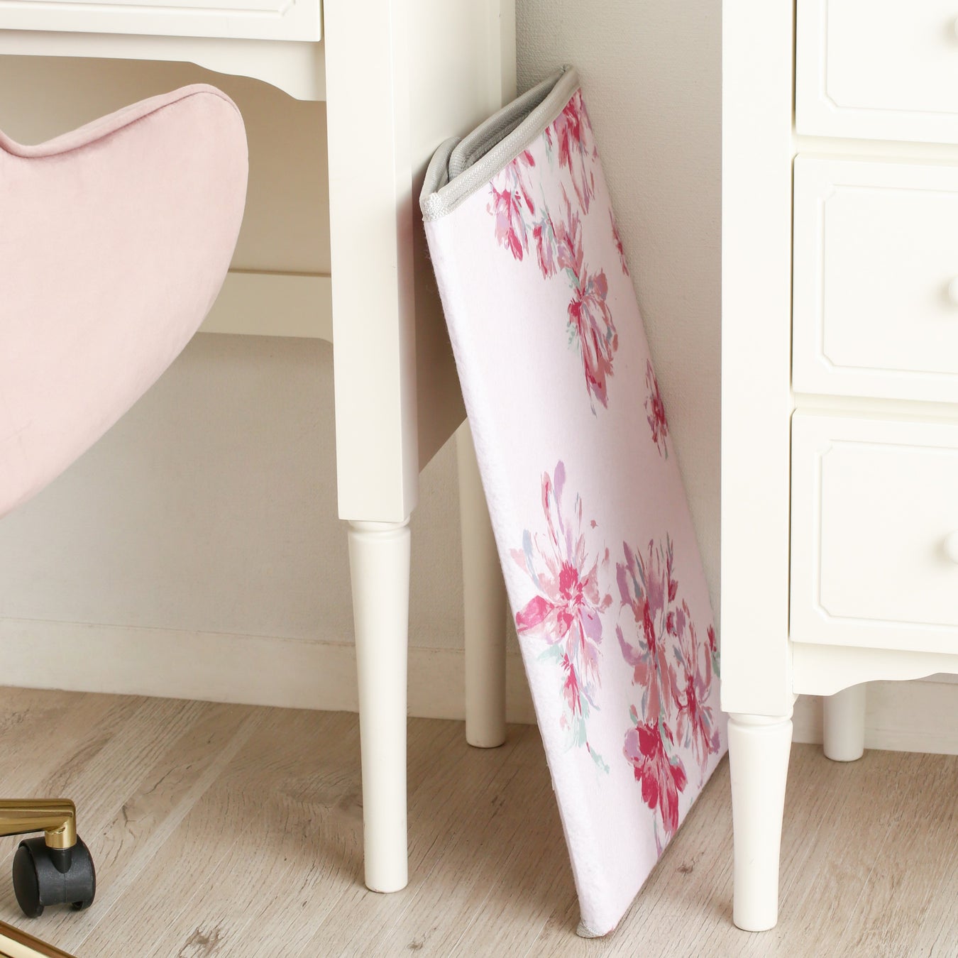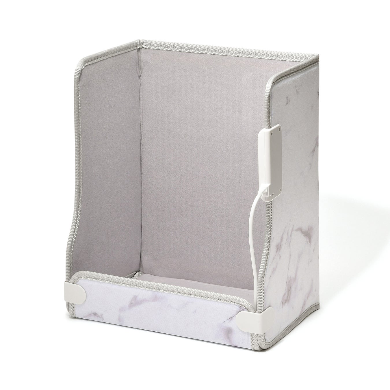 リモートワークにおすすめの足元をじんわり温めるパネル型のヒーターです。エアコンではなかなか温まらない足元を、4面からじんわり温めます。また、風が出ないので乾燥しないのも魅力的です。シンプルになりがちなヒーターですが、大人っぽいマーブル柄と、かわいらしい花柄のデザインでインテリアのアクセントにもおすすめです。コンパクトに畳めて移動や収納もラクラク。温度調整は強・中・弱の3段階が可能です。手の届きやすい位置にあるスイッチで簡単に切り替えることができます。
