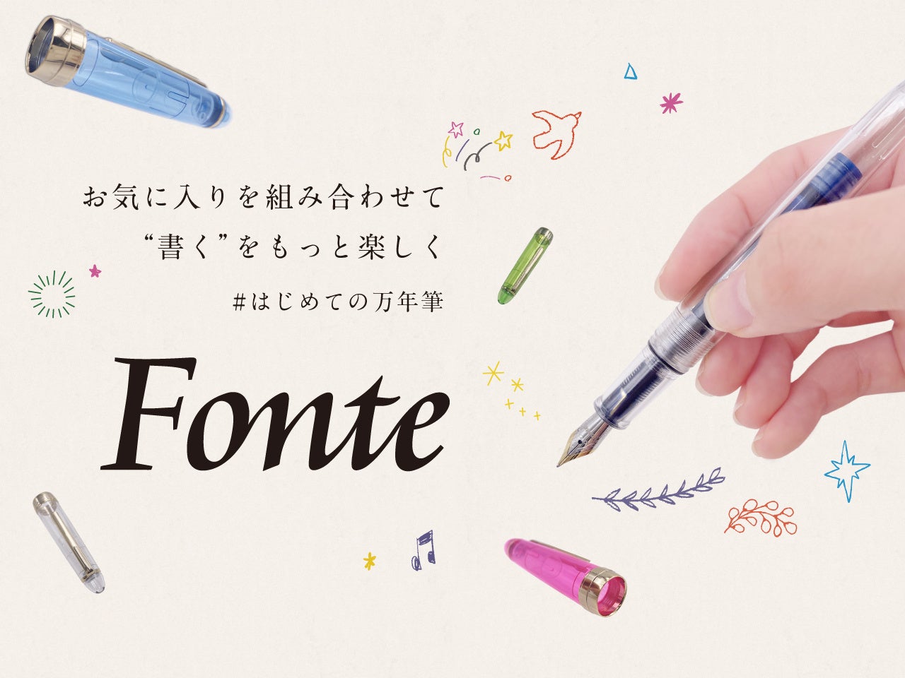 「Fonte」は、手に取りやすい価格帯の万年筆やガラスペンを中心としたブランドです。透明のボディに、別売りのキャップとインクを自由に組み合わせて、自分好みにカスタマイズできるのが特徴です。