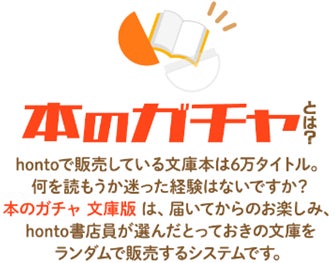 honto本の通販ストアで販売している文庫本約6万タイトルの中から、書店員が選んだとっておきの文庫をランダムでお届けする企画商品。