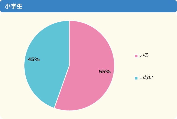 「ネッ友はいる」と答えた人は全体の61%でした。小学生は55%、中学生は66%で、中学生の方が約10%多い結果となりました。