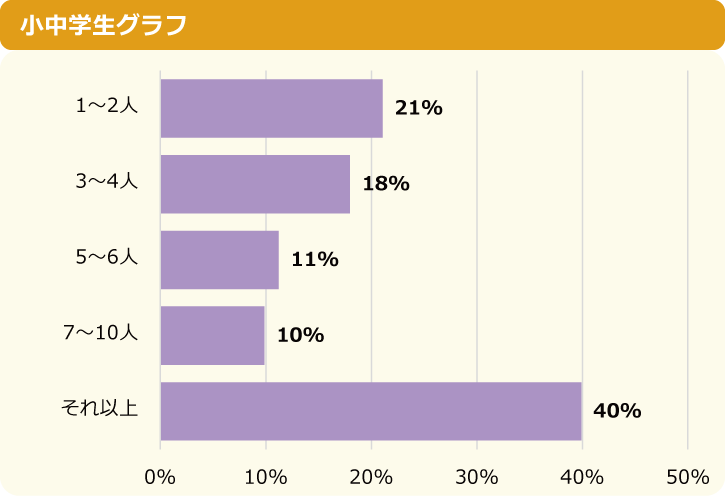 ネッ友がいる小中学生の中で、ネッ友が「10人より多くいる」人は40%と最も多い回答でした。