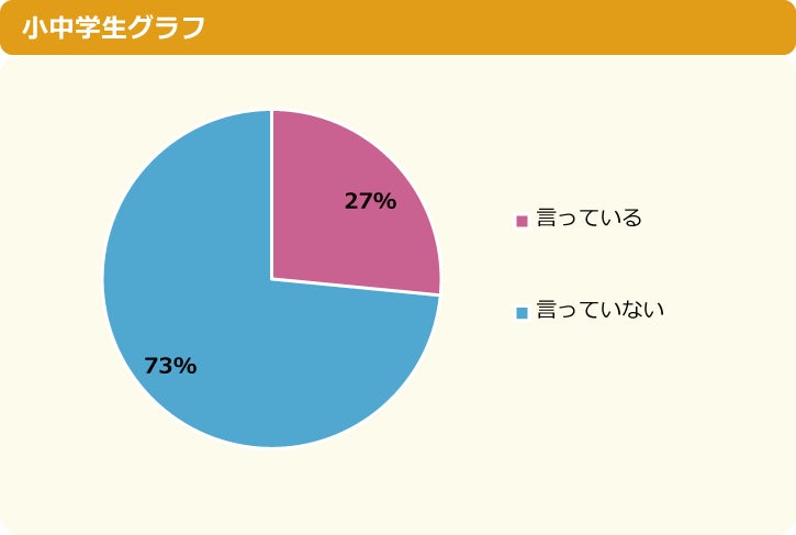 おうちの人に「言っている」と答えた人は全体の27%と、3割に満たない回答でした。約7割の人はおうちの人に言わずにネッ友とやり取りをしているようです。