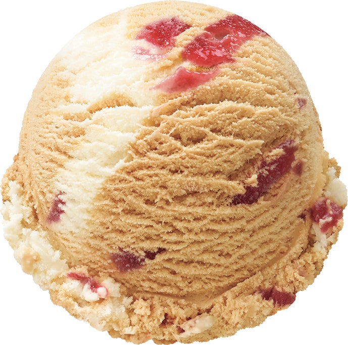 苺果肉を入れた こだわりの紅茶アイスクリームと優しいミルクのアイスクリームに、甘酸っぱいストロベリーリボンを加えたリッチなおいしさ