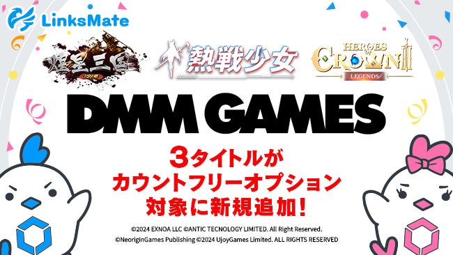 『DMM GAMES』にて配信中のゲーム3タイトルがMVNOサービス「LinksMate(リンクスメイト)」のカウントフリーオプション対象コンテンツとして2024年11月7日(木)より追加!