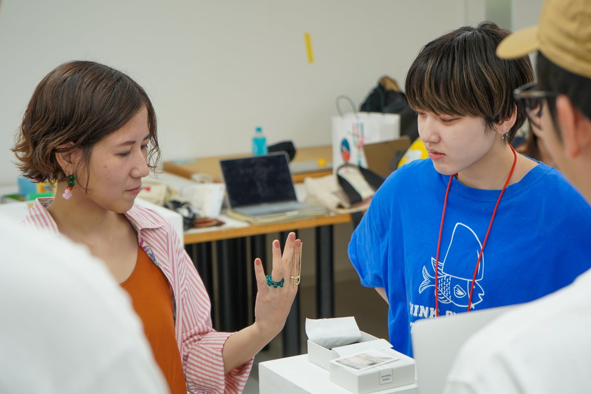 本プロジェクトは、産学官連携の一環として、京都のデザイン事務所「UMMM(ムム)」が主催するファッションブランド「KIWI(キウイ)」とコラボし、ブランドの求めるテーマによる商品企画および空間演出を実践する授業です。