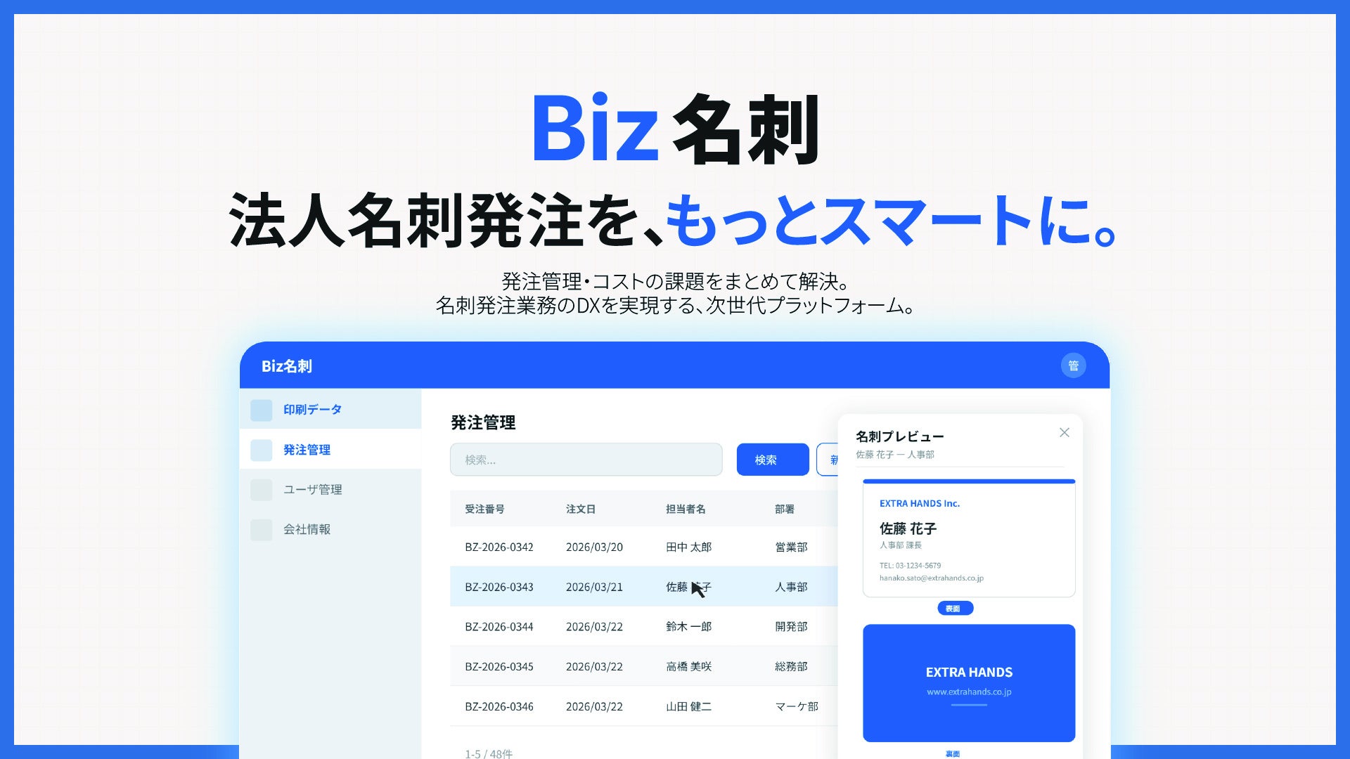 名刺発注DX『Biz名刺』誕生!好評の『マイ名刺 biz』が名称変更してパワーアップしました!