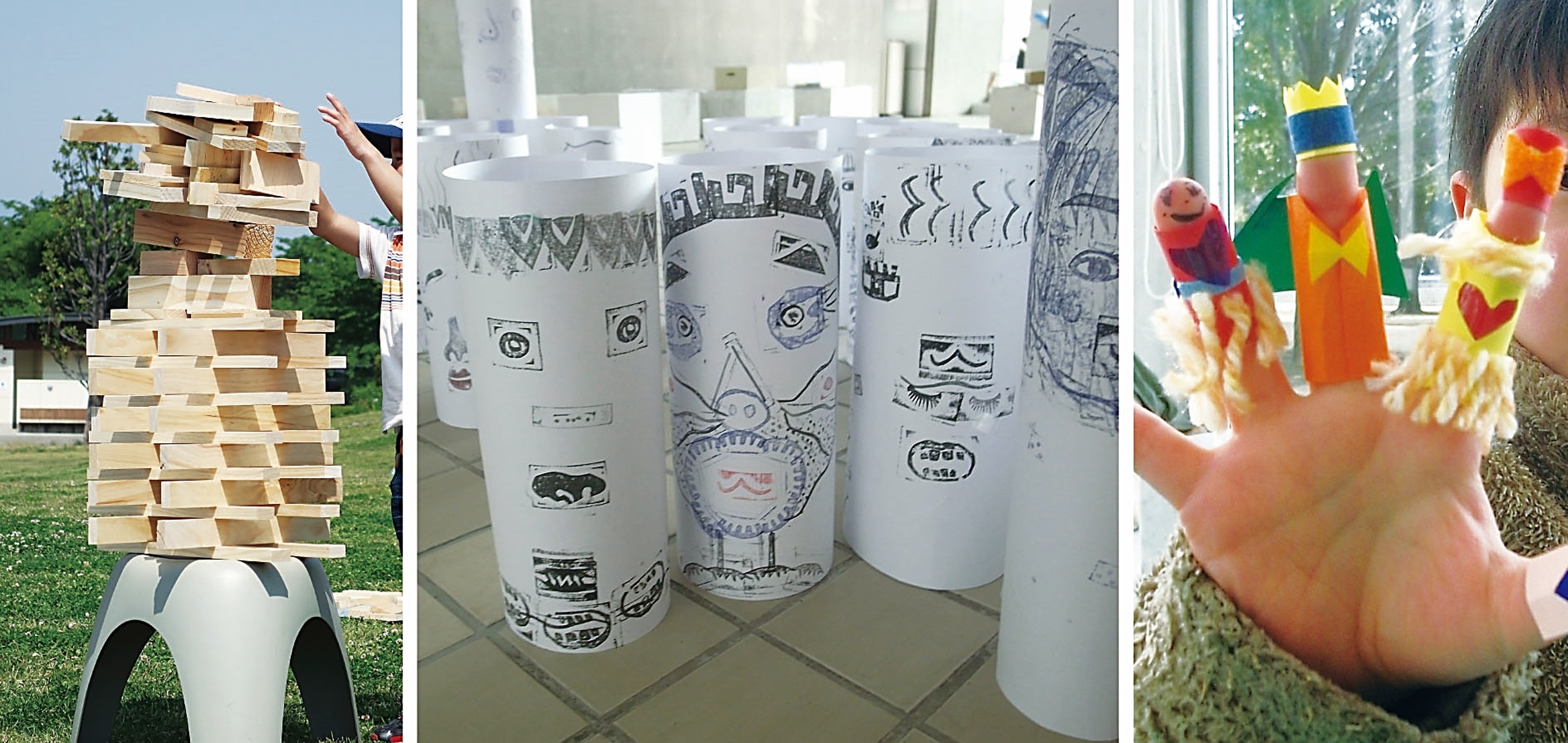 【内容】木工所で廃材となった様々な木片で積み木をしよう。思い思いに積んだり、指令を受けてみんなでいろいろな形を作ってみよう。