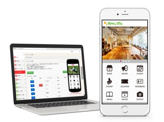 提供を開始する「APPLI Me」は、プッシュ通知やクーポン、スタンプなどさまざまな機能を自由に組み合わせ、オリジナルメニューが簡単にできるスマホアプリ構築のCMSです。Web上でアプリを構築・運営できる管理画面を操作し、いつでも簡単にメニューの組み換えや情報配信などが行えます。また、Apple社、Google社への煩雑な申請対応もすべて代行しますので、低価格かつ短期間でオリジナルアプリを簡単に作ることが可能となっています。