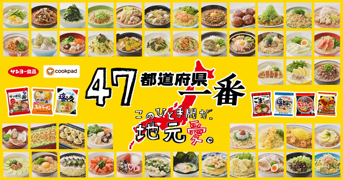 - クックパッド株式会社は、袋麺『サッポロ一番』の秋キャンペーン「このひと手間が、地元愛。47都道府県一番」の「47都道府県一番レシピ」の監修およびレシピ開発をした