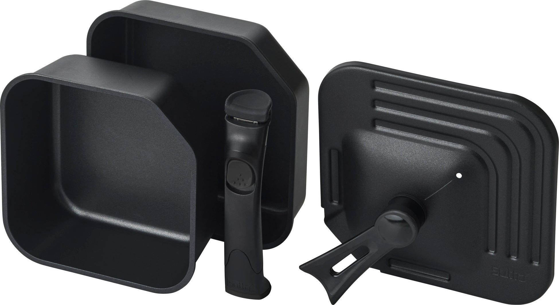 従来のsuttoフライパンはハンドルが固定されているタイプでしたが、立てて収納できる独自の形状はそのままに、ハンドルが取り外せるタイプも欲しいというご要望を多くいただき、開発に至りました。今回、発売する本製品は、フライパン自体が自立するのはもちろん、ハンドルが取り外しできるので重ねて収納することが可能となり、従来のsuttoフライパンより収納性が向上しています。