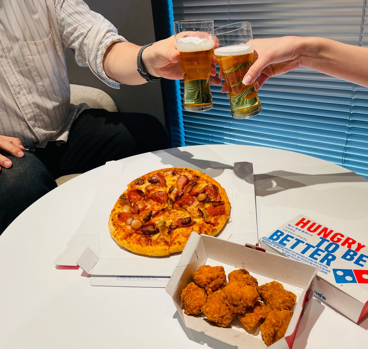世界で一番シェアに向いている食べ物「アツアツのピザ」と、衣はサクッ!お肉はジュワ~!の「ジューシーからあげ」のセットは、ビールのお供に最高です。お父さんと一緒に、家族みんなでつながるひと時を楽しみながら、日ごろの労をねぎらってはいかがでしょうか。