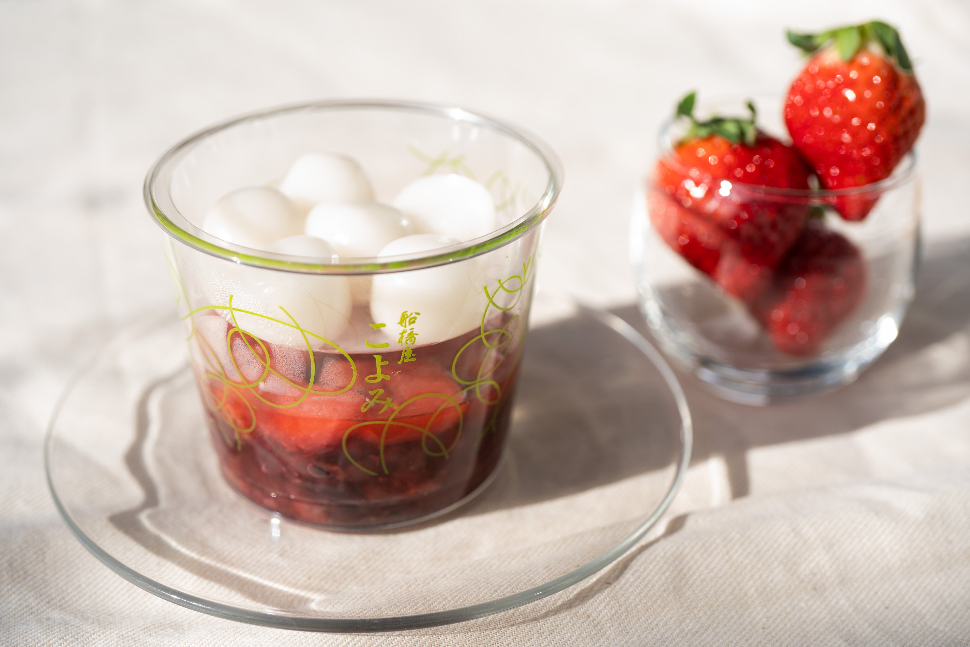 冬を彩る真っ赤な苺を使用した船橋屋こよみの季節しるこ。