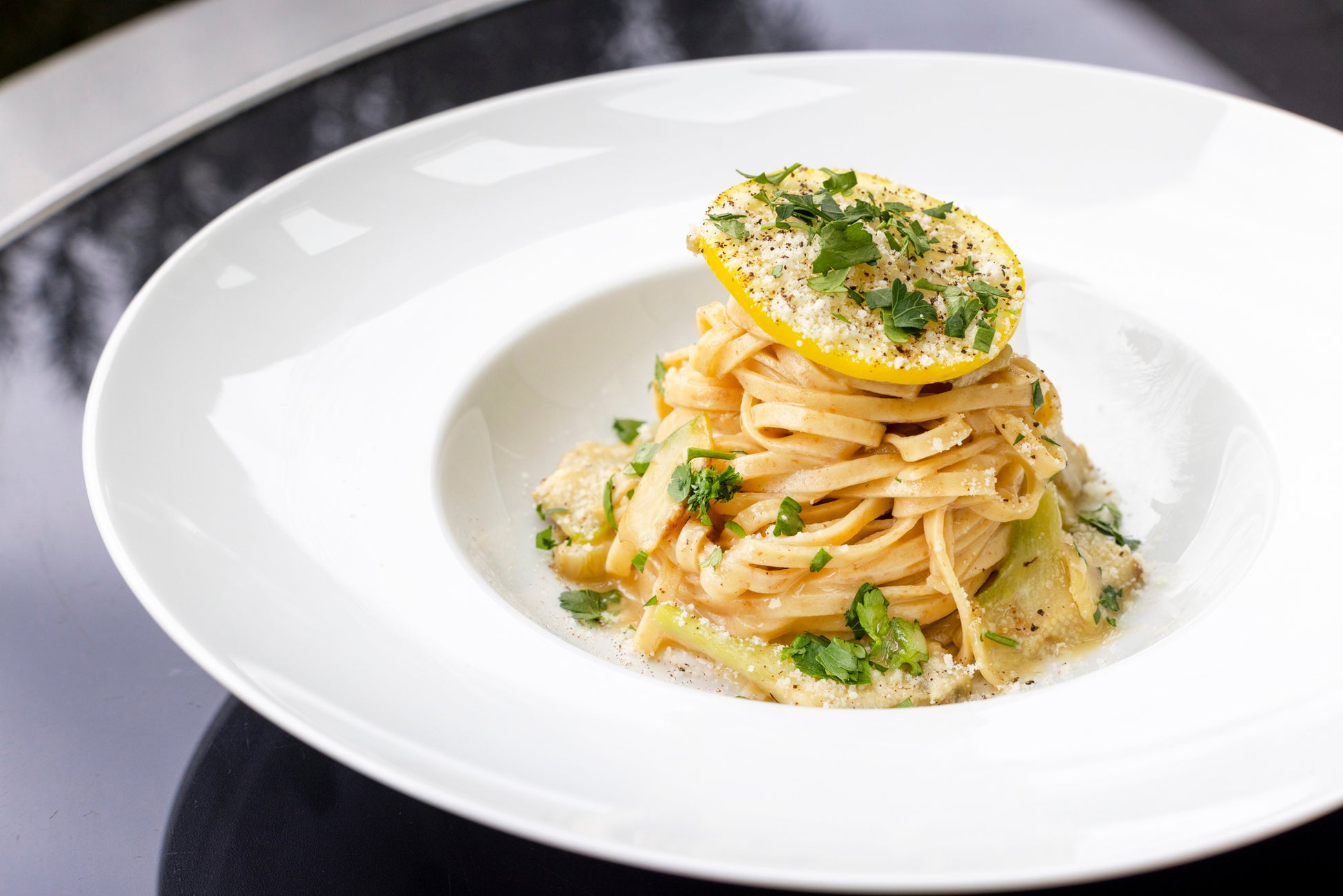 夏バテ気味でもさっぱりと食べられる、シチリア産のレモンをつかったレモンタリオリーニがリニューアルして登場します。こだわりの自家製でご用意する平打ちパスタのタリオリーニにカルチョーフィ(アーティチョーク)を加え、味付けはレモンのジュースとレモンオイルで軽やかに仕上げます。レモンの酸味は抑えた上品な味わいは、夏バテ気味でもさっぱりと食べられる逸品です。