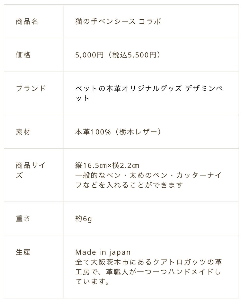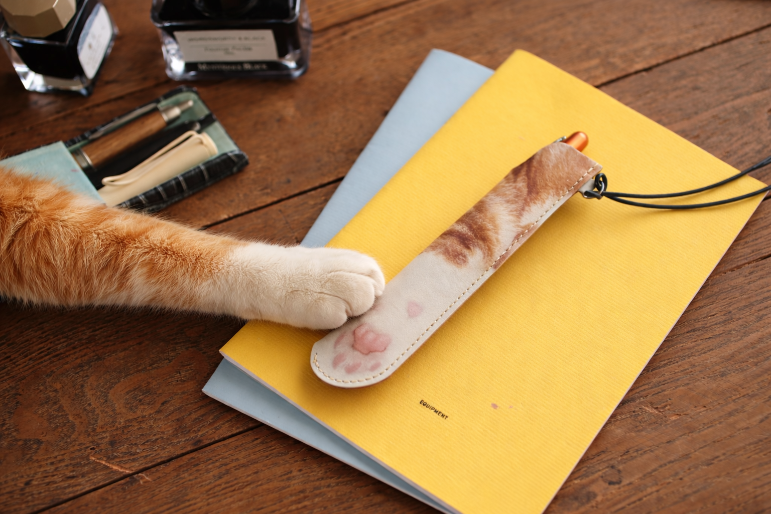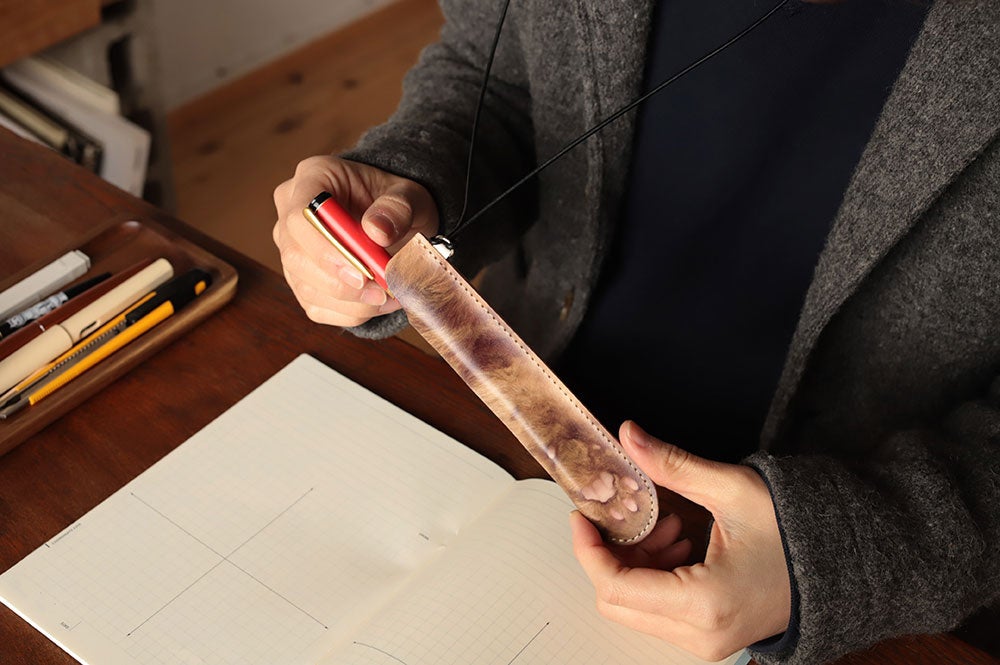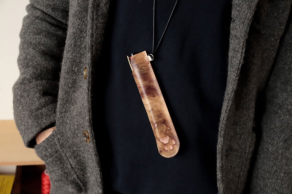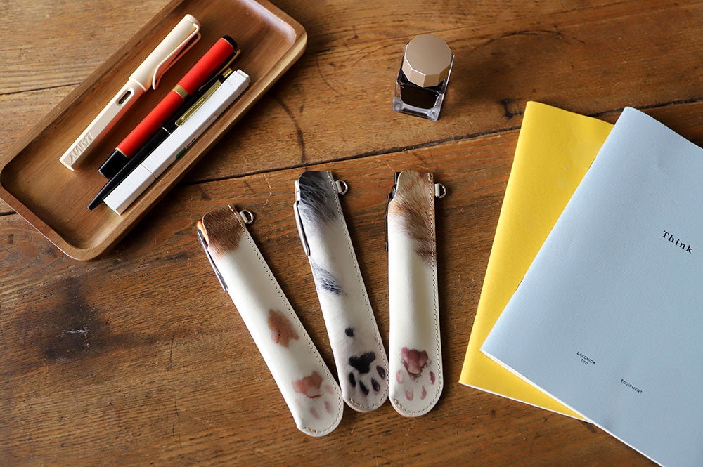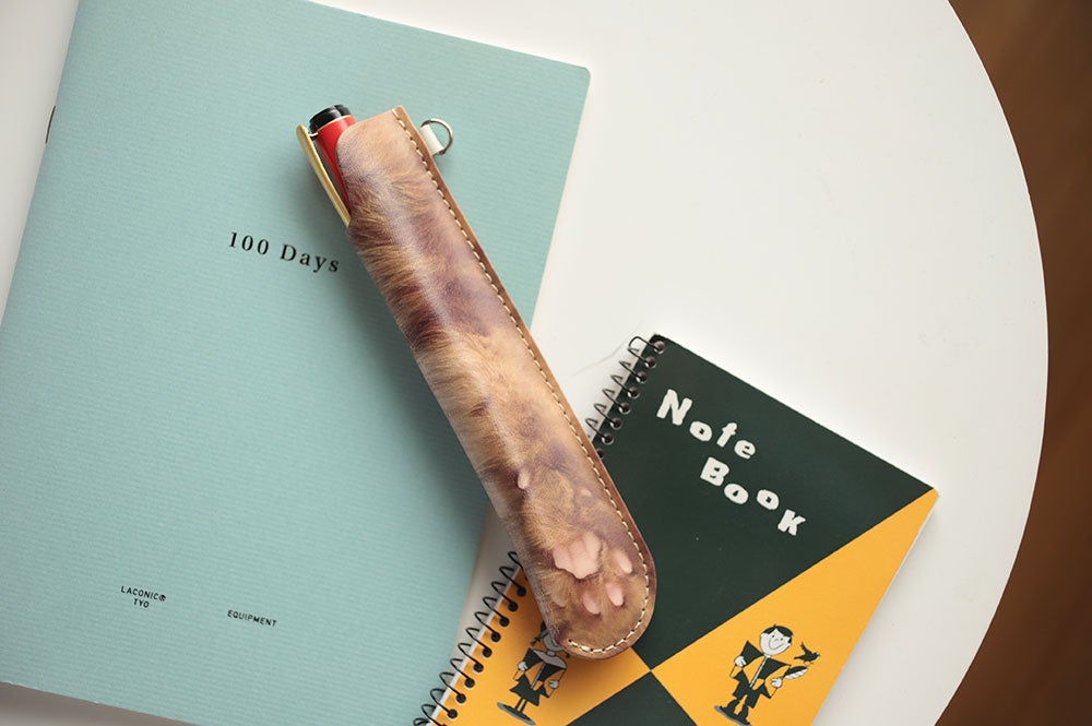 かわいい猫のおててを本革のペンシースに仕立ててお届けします。