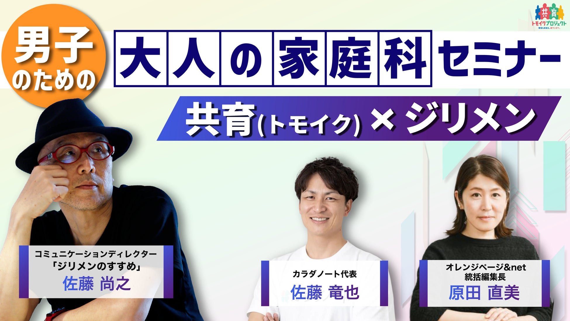 「ジリメンのススメ~昭和男子よ、妻から自立しよう~」※1 は、オレンジページが運営するWEBメディア『ウェルビーイング100 by オレンジページ』において、佐藤尚之氏が連載するコラムです。“自立的に家事・育児に関わる男性” をテーマに、共感を呼ぶ実例やヒントを発信しています。今回は、厚生労働省の「共育(以下、トモイク)プロジェクト」と連携し、トモイクを後押しする実践的なコンテンツとして制作されました。