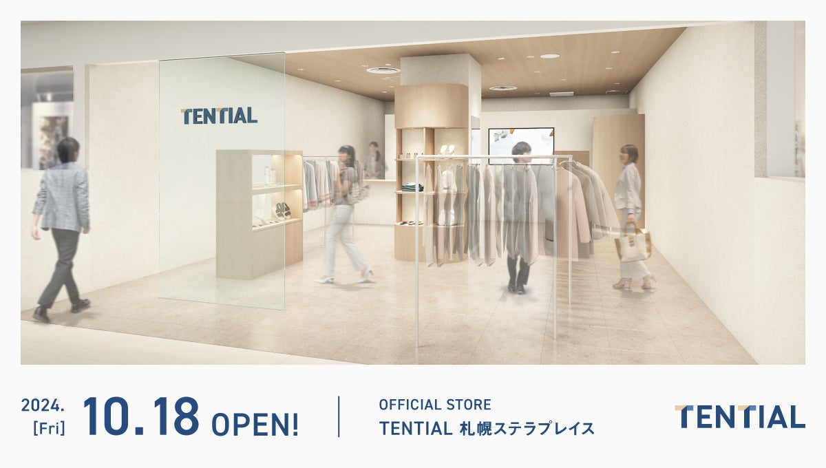 TENTIALの直営第1号店はブランドの理解促進と、製品を体感いただける場所の展開を目的に2022年に新丸ビル内にオープンしました。現在までに計9店舗の直営店を展開し(2024年9月10日現在)、多くのお客様にご愛顧いただき売り上げが好調に推移するなかで、この度、北海道地区初となる「TENTIAL 札幌ステラプレイス」を出店することといたしました。