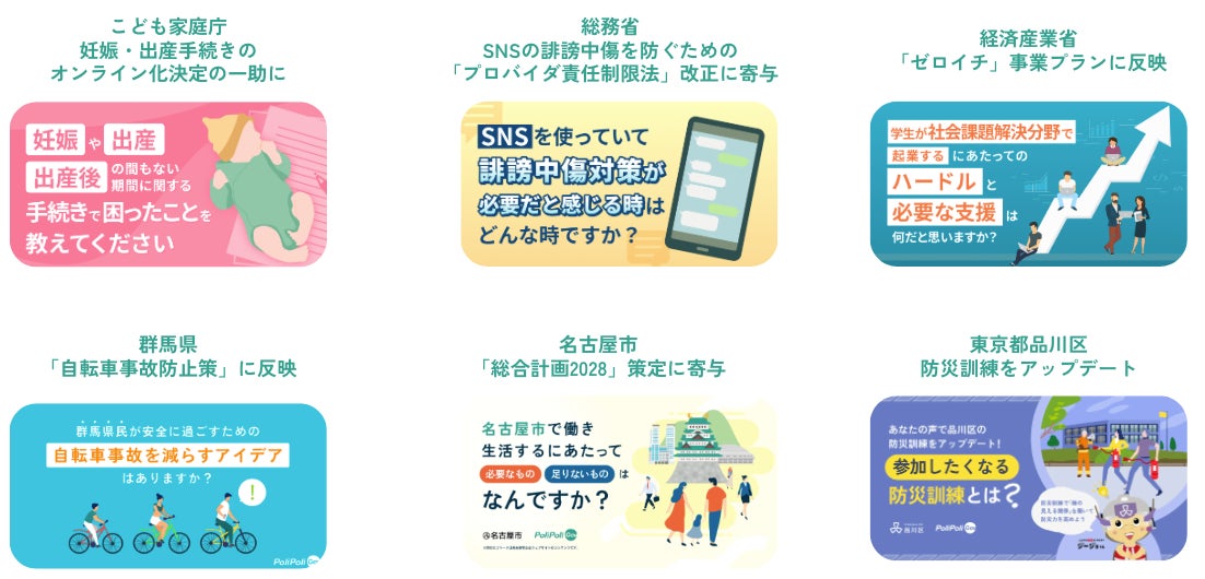 PoliPoliは、行政に声を届けるウェブサイト『PoliPoli Gov』などを通じて、住民と行政の対話を促進し、デジタル時代における「広聴」の仕組みをアップデートし、さまざま政策共創を実現してまいりました。