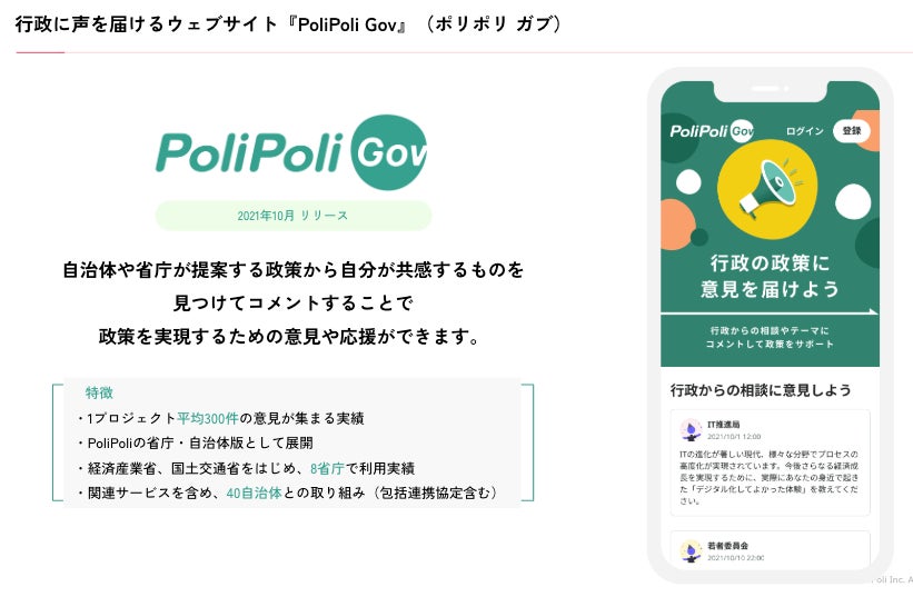 2. 行政に声を届けるウェブサイト『PoliPoli Gov』(2021年リリース)
