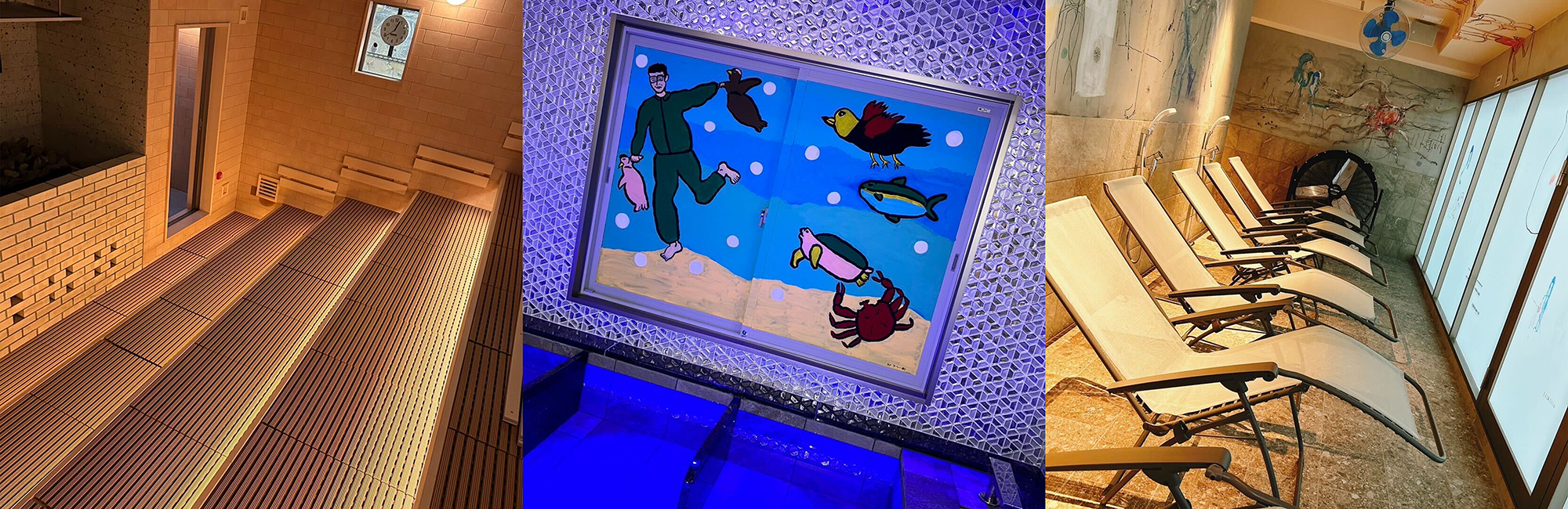 チラーつき浴槽、最大110度のサウナ室、20種類アロマ、ととのいバルコニー、電子レンジ、エスプレッソマシーン、フリードリンク冷蔵庫、VOD視聴対応TV、インターネット接続(Wi-Fi対応) |