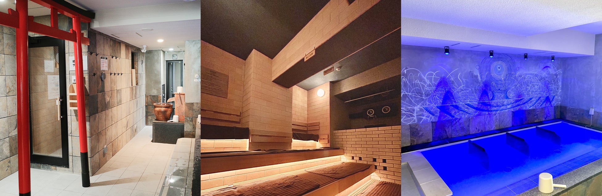 おしゃべりしたら即退会の「絶対静寂サウナ室」とおしゃべり専用「談話サウナ室」の、2つの異なる「Dualなサウナ室」を提供。設計上、極限までの熱さを追求するための大型サウナストーブ、自動ロウリュ、自動熱波機能を完備。サウナ室入り口に本格的な「鳥居」を設置し、サウナストーブの上にはサウナストーン「勝負乃神」を祀ることで、より特別感のある体験を味わいながらご入浴いただけます。