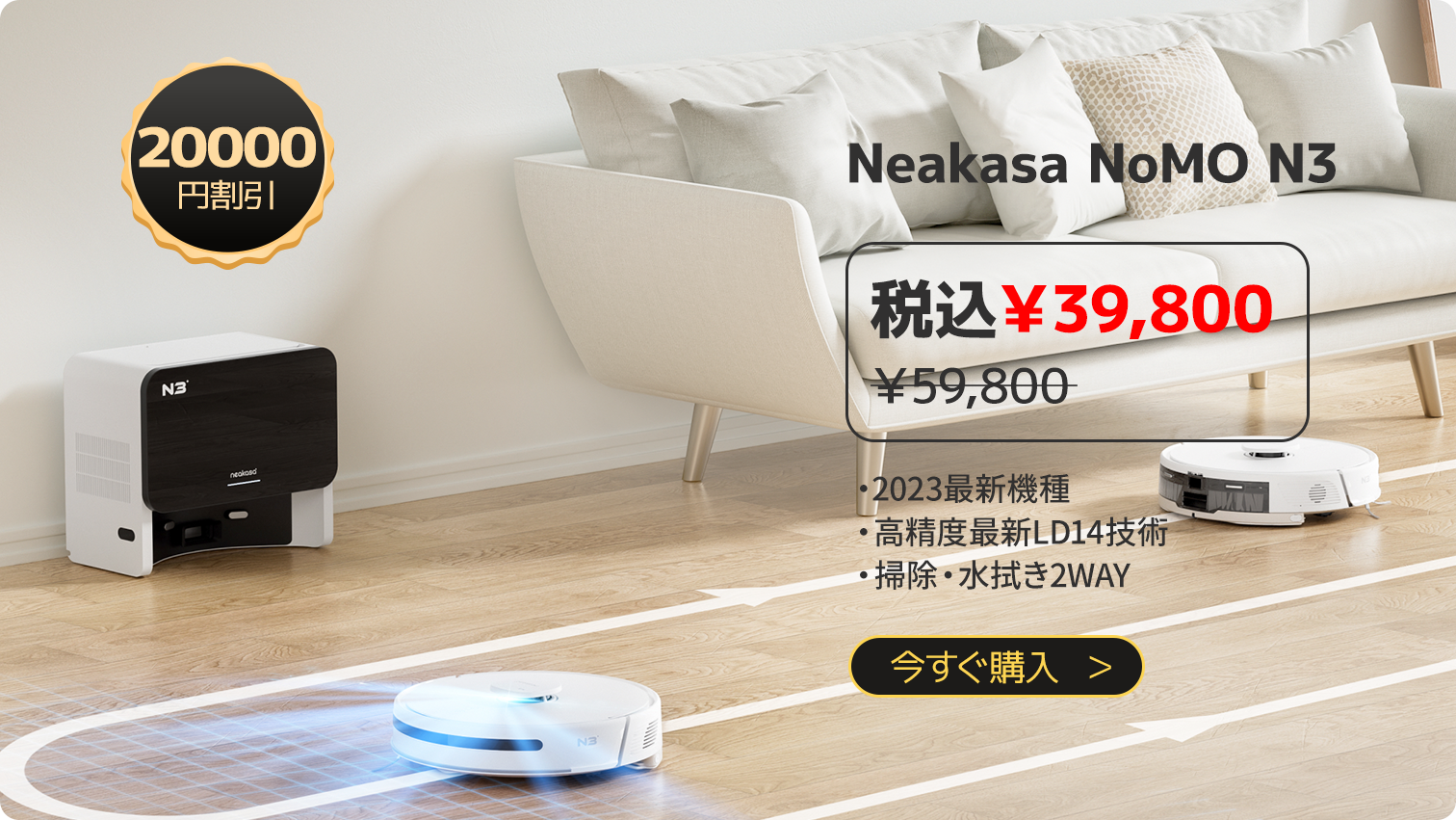 30%OFF!最新機種、賢すぎるロボット掃除機『Neakasa(ネアカサ) Nomo N3 』