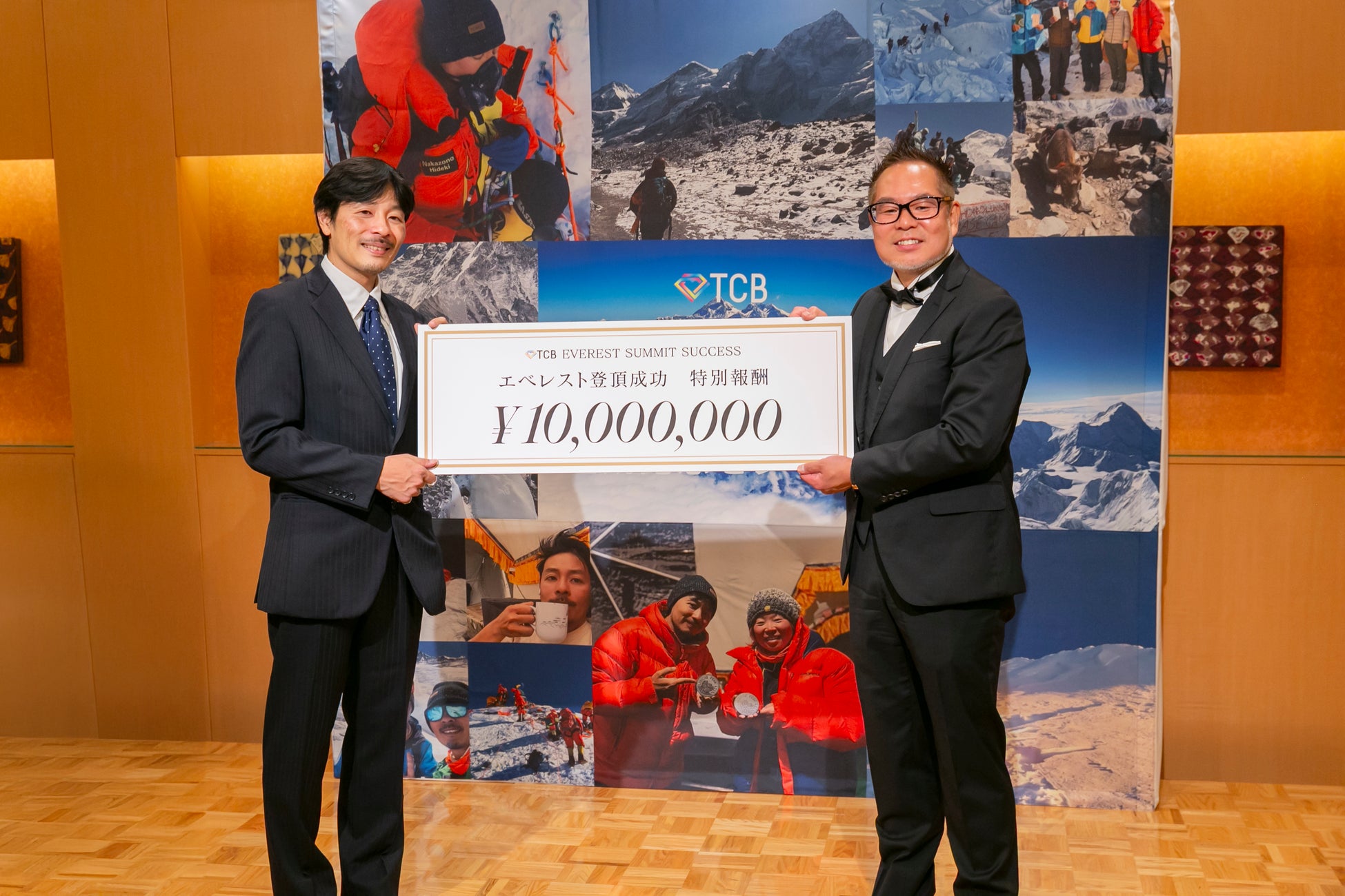 また、日本人美容外科医としても中園医師が初めてのエベレスト登頂成功者となり、TCBから中園医師へ1000万円の特別報酬が支給されました。