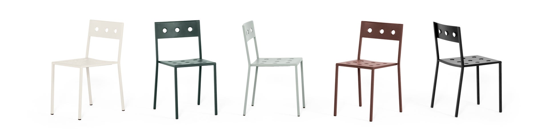 OSAKAのオープンとともに展示販売がスタートします。椅子、テーブル、ベンチを展開するBALCONYの特徴は、等間隔に並ぶ穴のデザインです。レーザー加工で開けられたこの穴は、見た目の柔らかさだけでなく安定性を加え、耐久性、快適性、デザイン性を兼ね備えた汎用性の高いコレクションを作りだしています。粉体塗装のスチールに耐候性のコーティングを施し、豊富なサイズと色を取り揃え、さまざまなアウトドア空間でお使いいただけます。