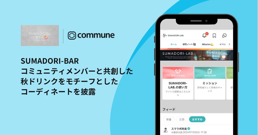 コミュニティサクセスプラットフォーム「Commune(コミューン)」を提供するコミューン株式会社は、ファンコミュニティにCommuneを活用する「SUMADORI-BAR」が、コミュニティメンバーと共創した秋ドリンクをモチーフとしたコーディネートを披露するファッションショーを、一般社団法人渋谷未来デザインが主催するソーシャル&カルチャーデザインの祭典「SOCIAL INNOVATION WEEK 2024(以下SIW)」にて開催することをお知らせします。